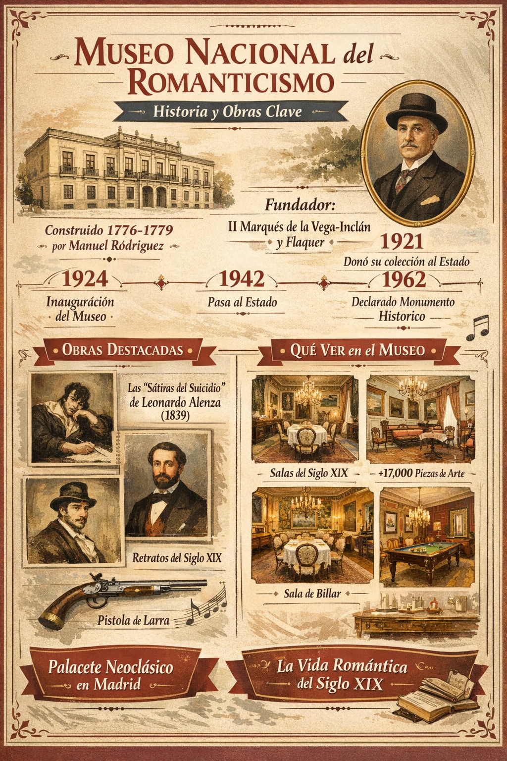 El Museo Nacional del Romanticismo es uno de mis museos favoritos. Se encuentra en Madrid. En el año 2024 cumplió cien años. Representa el estilo de vida del siglo XIX. Una de las piezas más macabras que podéis encontrar es la pistola con la que se suicidó Larra, aunque él no murió en este palacete, su familia donó el arma. Larra destacó en este periodo como un gran articulista y escritor. En el siglo XIX tanto los duelos como los suicidios se convirtieron en señas de identidad cultural del movimiento romántico; se le conoce como "el mal del siglo". Muchos jóvenes preferían morir a vivir en una sociedad mediocre.